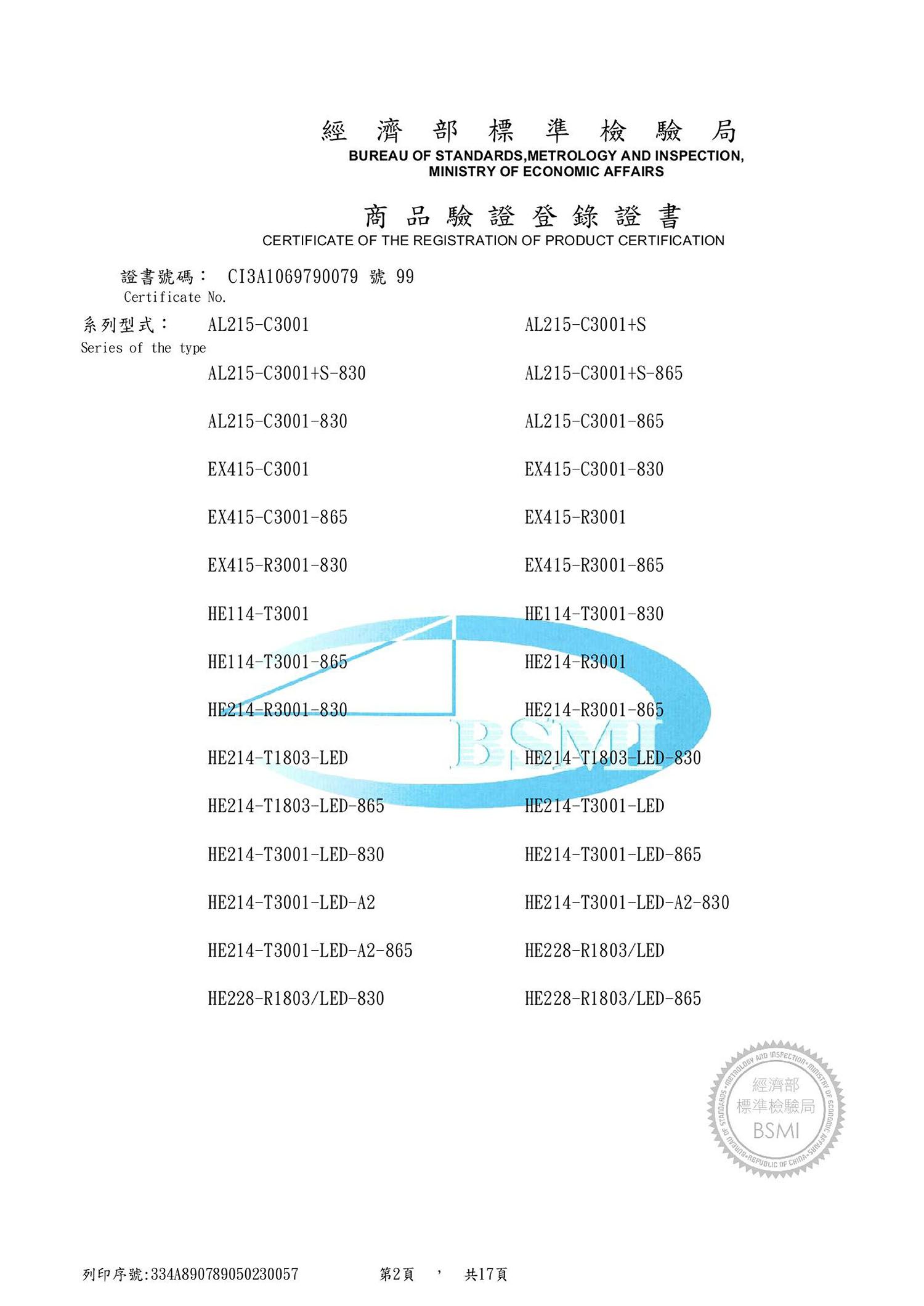 - 標準檢驗局BSMI證書編號:CI3A1069790079號99