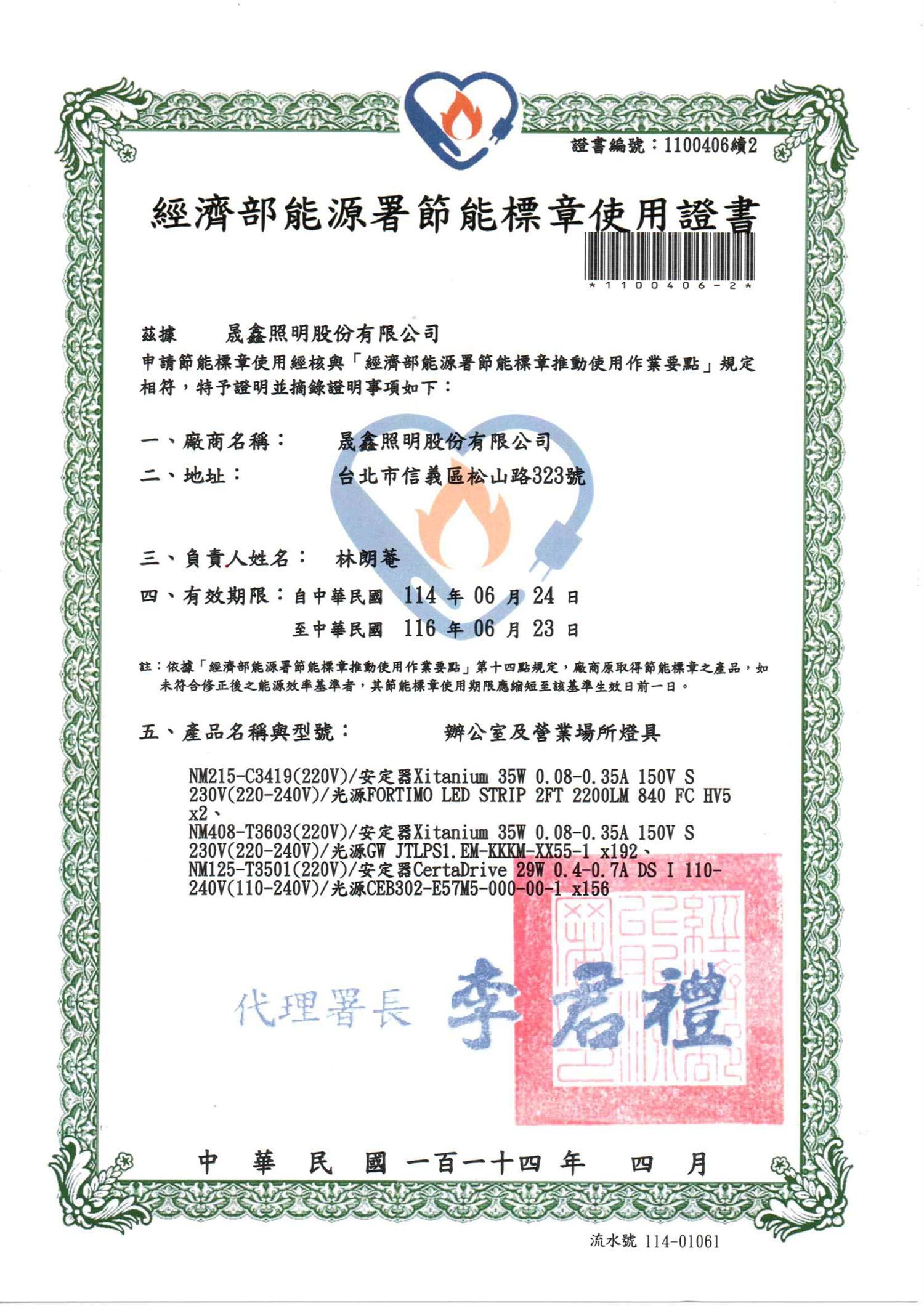 - 節能認證字號:1100406續2 (適用型號:NM215-C3419)